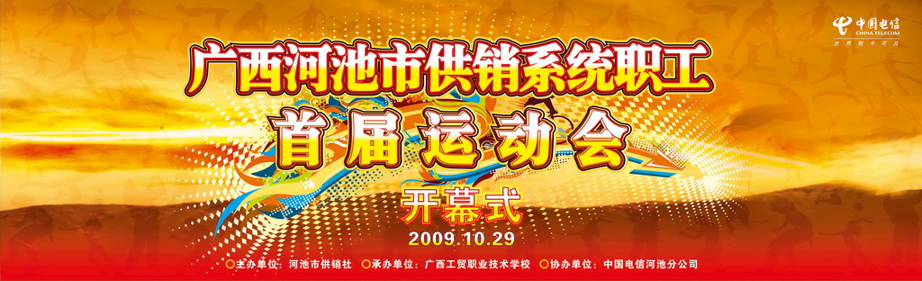 据校长室消息,2009年河池市供销社系统首届运动会将于10月30日、31日在我校举行。本次运动会设置的项目主要有气排球、乒乓球、扑克、象棋等项目。目前,各项工作正在紧张的筹备之中,以下是本次运动会开幕式的相关流程: