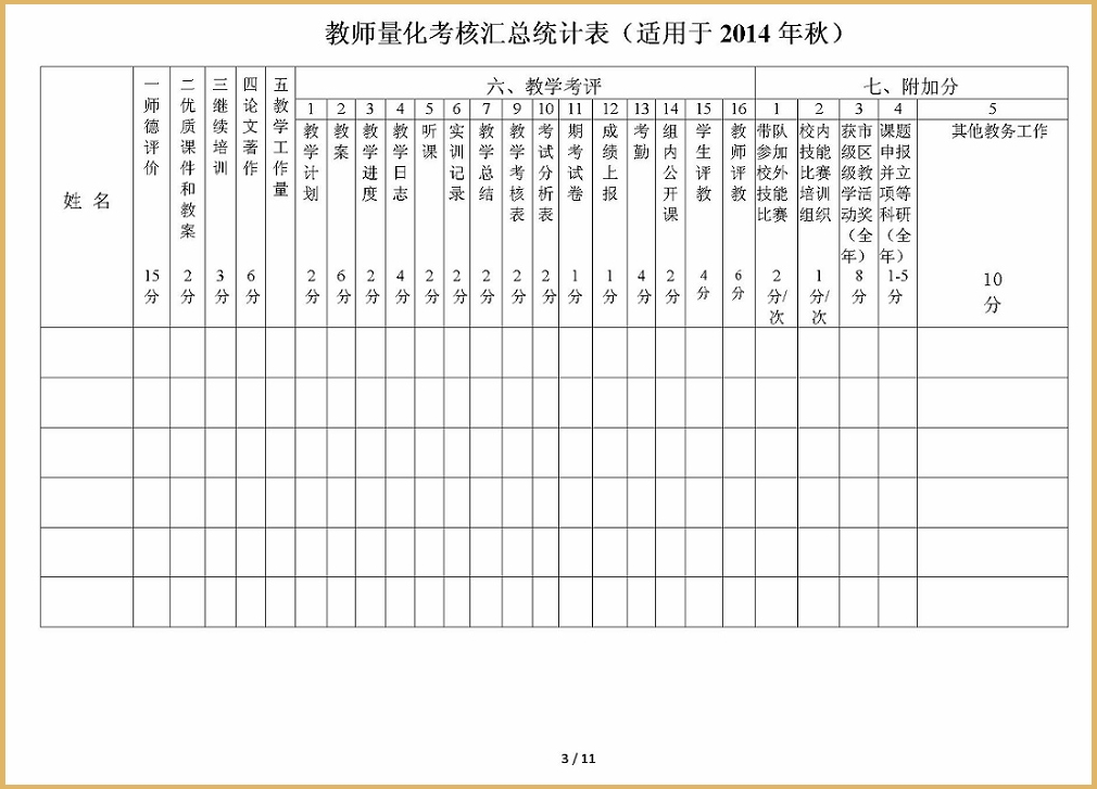 继续增加、完善项目(如:劳动、教学纪律,课堂管理等),明确、细化各项目要求,使评优方案更加科学合理、公平公正,更好地发挥竞争激励作用,充分调动全体教师的积极性、主动性和创造性,以适应现代职业教育发展新常态的迫切性需要。