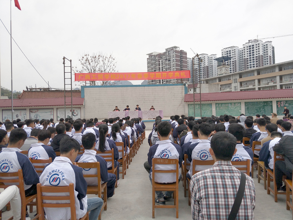 “一日之计在于晨,一年之计在于春”。2月20日,我校在学校舞台处举行了2017年春季学期开学典礼,参加典礼的人员有:吴万东校长、岑锦华副校长、学生科石琳科长、教官队成员、全体教职工及全体学生。典礼由石琳科长主持。