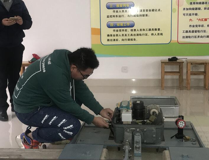 2019年12月28日下午,广西轨道交通行业职业教育教学指导委员会城市轨道交通专业教学指导委员会(简称广西城轨专指委)主任委员、城市轨道交通运营管理专业群带头人马成正教授在柳铁运输管理学院C6实训楼一楼的城轨实训室给参加培训的老师进行了行车突发事件处置培训,还具体讲授了当信号系统故障,无法在LCW上自动排列进路或手动排列进路时,现场人工排列进路的方法。