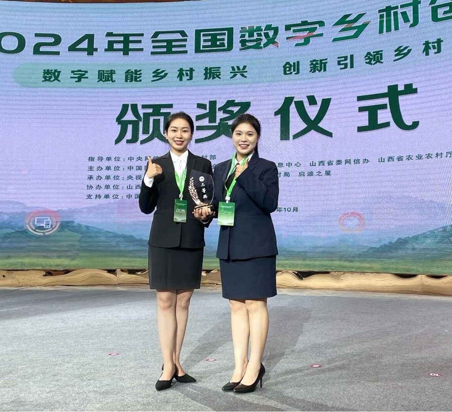 2024年10月10日至12日,由山西省大同市主办的“2024年全国数字乡村创新大赛”决赛及颁奖仪式圆满落幕。我校许灿、宋木冰老师代表学校参加了此次盛会,与来自全国各地的优秀团队同台竞技。颁奖典礼上,山西省委常委、大同市委书记卢东亮,农业农村部党组成员李敬辉,中央网信办副主任王崧等领导发表了精彩致辞,对获奖团队表示热烈祝贺。