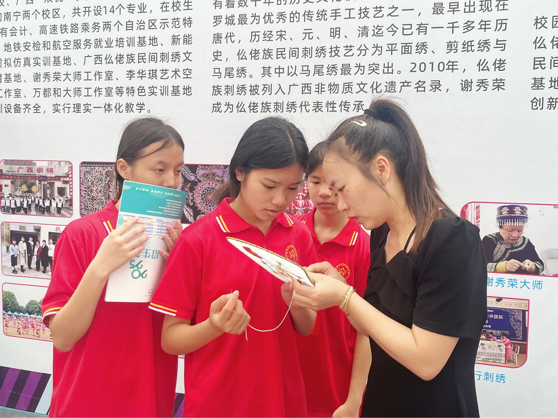 (贵港市中小学研学学生体验仫佬族刺绣工艺)