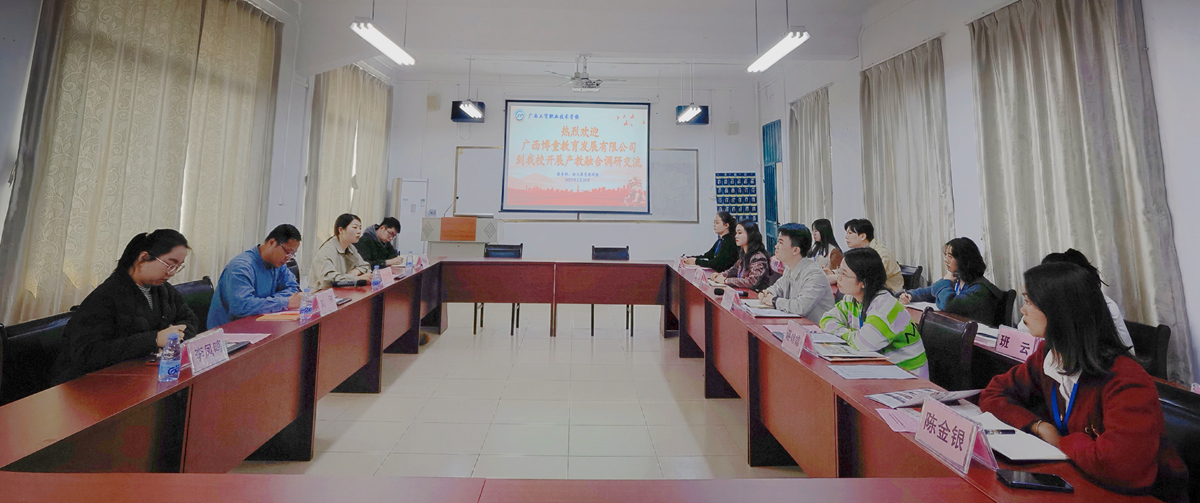 产教谋发展,座谈畅未来。2023年2月28日下午,广西博童教育发展有限公司总经理助理兼研究院执行院长刘浩、客户发展二部总监范叶芳、研究院运营主管李凤鸣、客户发展二部经理黄建伟,一行四人到广西工贸职业技术学校南宁校区开展产教融合调研交流会。学生科科长陆映州、财经商贸教研室主任谌嫦嫦,以及教务科干事柳妹丹和幼儿保育教研组专业课教师进行接洽,并在一教305会议室就幼儿保育专业建设、产教融合的瓶颈、课程设置问题深入开展交流。